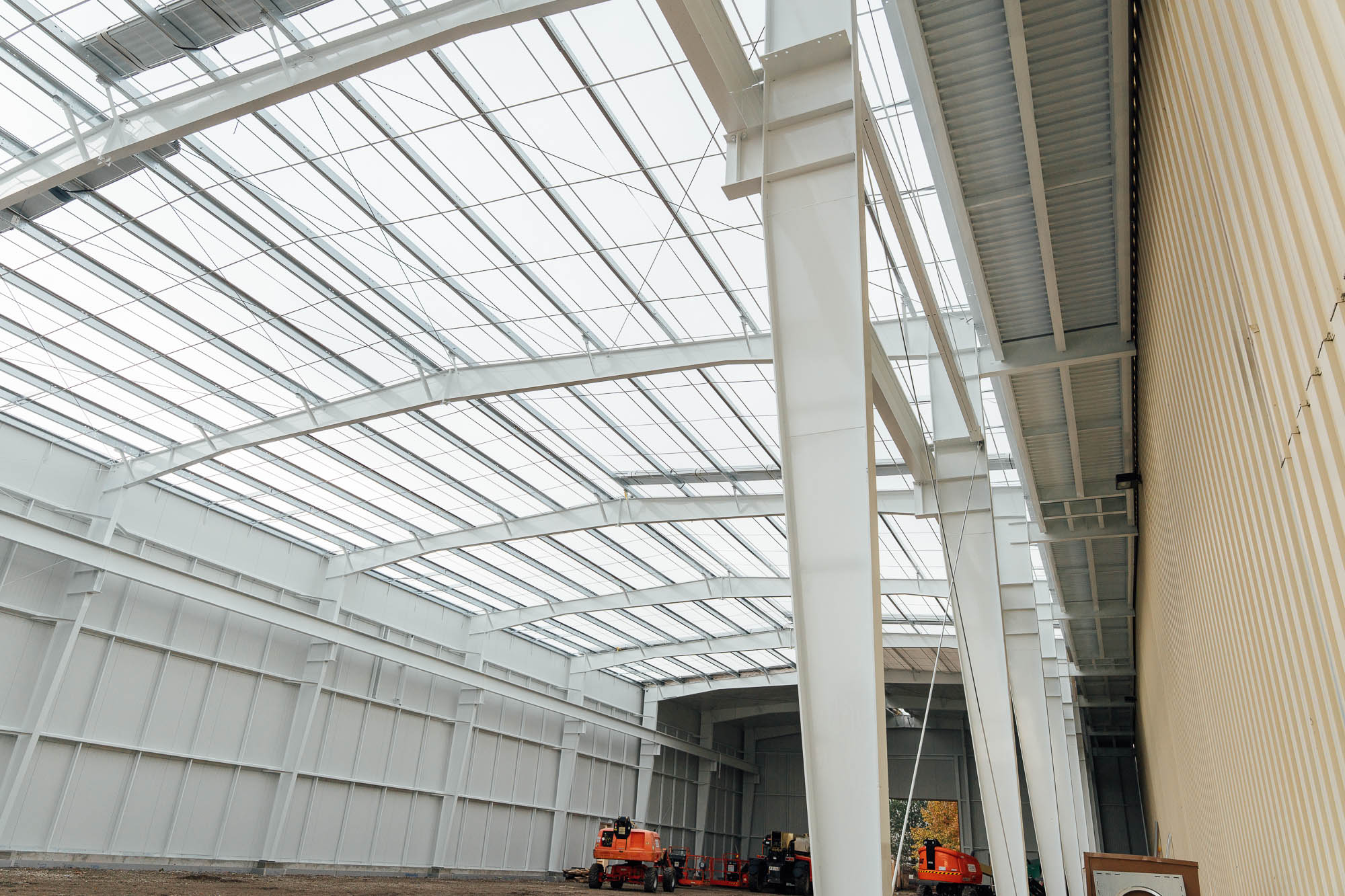 Interior view of AmeriChem Systems expansion showing roof structure and columns